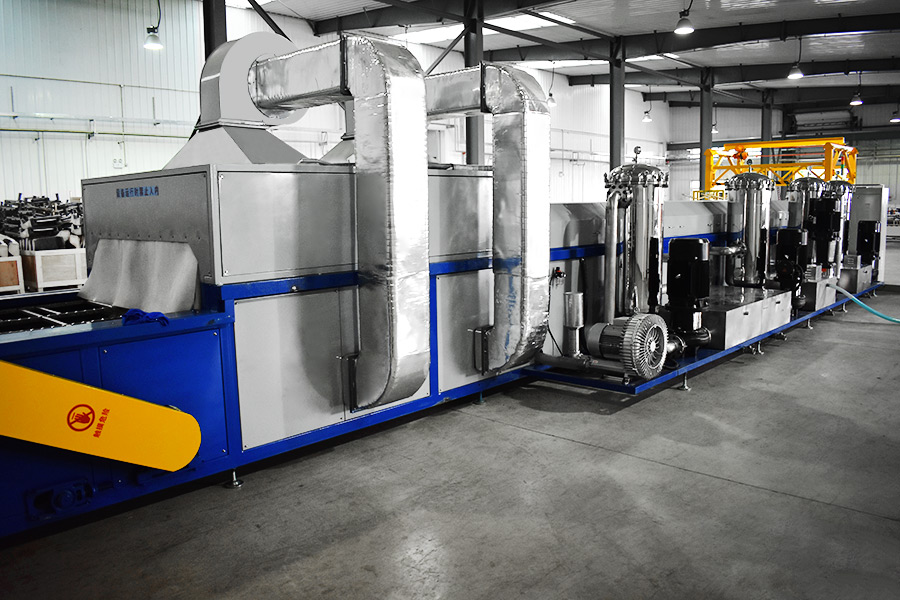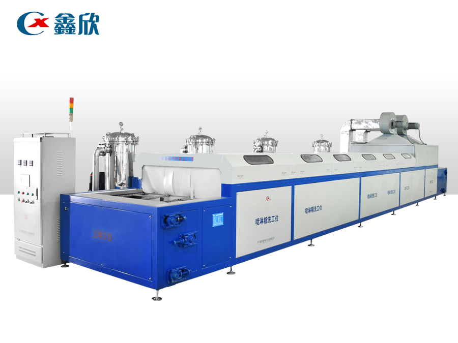 該設(shè)備有上下料網(wǎng)帶、超聲波清洗工位、噴淋漂洗工位、高壓風切、熱風烘干工位、溫控水加熱系統(tǒng)、風機、溫控空氣加熱系統(tǒng)、移動式風刀、PLC+觸摸屏控制系統(tǒng)、管路系統(tǒng)及智能電器控制系統(tǒng)等組成。自動進排液和自動加溫系統(tǒng)完全實現(xiàn)了無人干預,自動運行,很大程度上降低了工人的勞動強度。先進的霧氣處理系統(tǒng)可以將清洗時產(chǎn)生的霧氣冷凝回流,空氣經(jīng)過濾和活性炭吸附后排出。