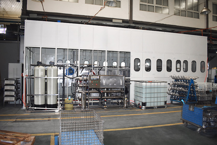 該設備有自動上下料及轉角系統、超聲波清洗系統,自動拋動、自動溢流和油污分離裝置,噴淋系統、自動高壓切水系統、自動烘干系統。機械手自動輸送系統采用高精度直線導軌配合高精度位置檢測傳感器,機械手可以準確的實現工件的抓取和放置。自動進排液和自動加溫系統完全實現了無人干預,自動運行,很大程度上降低了工人的勞動強度。先進的霧氣處理系統可以將清洗時產生的霧氣冷凝回流,空氣經過濾和活性炭吸附后排出。